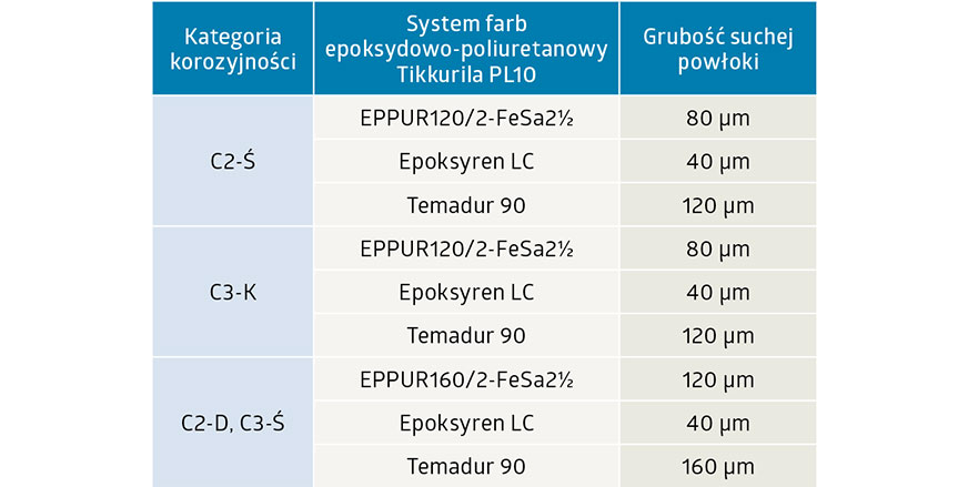 Obecnie najpopularniejsze wśród krajowych wytwórców sprzętu rolniczego. Podkłady epoksydowe dają bardzo dobre zabezpieczenie przed korozją. Farby nawierzchniowe schnące chemicznie, takie jak poliuretany czy akryle, cechują się bardzo dobrą trwałością koloru i połysku. O ile w przypadku farb alkidowych zastosowanie ograniczało się tylko do stali węglowych, to w przypadku podkładów epoksydowych, np. Epoksyren LC firmy Tikkurila, można zastosować je na aluminium, cynk ogniowy, cynk natryskiwany czy całą gamę powłok konwersyjnych wytworzonych na stali, cynku czy aluminium. Firma Tikkurila rekomenduje obecnym i potencjalnym klientom produkującym maszyny rolnicze epoksydowo-poliuretanowy system PL10. System ten składa się z wspomnianego podkładu epoksydowego Epoksyren LC i nawierzchniowej farby poliuretanowej Temadur 90. System charakteryzuje się wysoką odpornością potwierdzoną badaniami w komorze solnej i komorze UV, szybkim przemalowaniem podkładu, farbą nawierzchniową (15 minut w 23°C przy grubości na sucho 60 µm), bardzo dobrymi właściwościami aplikacyjnymi obu wymienionych farb.