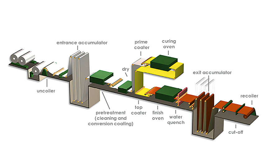Powlekanie zwojów jest to ciągły, zautomatyzowany proces powlekania metalu przed jego przetworzeniem na produkty końcowe. Podłoże stalowe lub aluminiowe jest dostarczane w formie zwoju z walcowni. Metalowy zwój jest umieszczany na początku linii powlekania i w jednym ciągłym procesie jest rozwijany, czyszczony, poddawany obróbce wstępnej, gruntowany i malowany lub drukowany przed zwinięciem po drugiej stronie linii, a następnie pakowany do wysyłki. Wszystko to dzieje się z prędkością do 180 metrów na minutę!