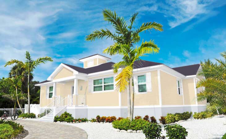Ciemne brązy, szarości i czernie pilnie wymagają rozświetlenia. Aby nasz dom nie przytłaczał optycznie, rozjaśnijmy jego fasadę, powlekając ją świetlistą, piaskową żółcią. Kolor ten sprawdzi się zwłaszcza w połączeniu z białymi lub ciemnobrązowymi dodatkami i wykończeniami, uwydatniając je, a jednocześnie dodając całej kompozycji tak potrzebnej jej lekkości.