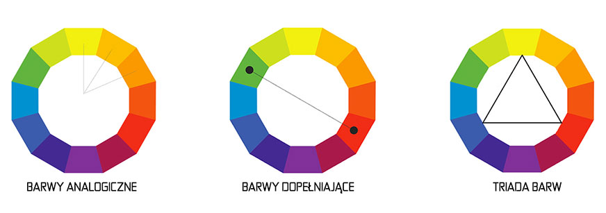 Koło barw stanowi podstawowe narzędzie doboru kolorów. Nie wszyscy jednak wiedzą, że można je wykorzystać nie tylko do wyboru konkretnego odcienia, ale też sprawdzenia, które kolory będą ze sobą współgrać.